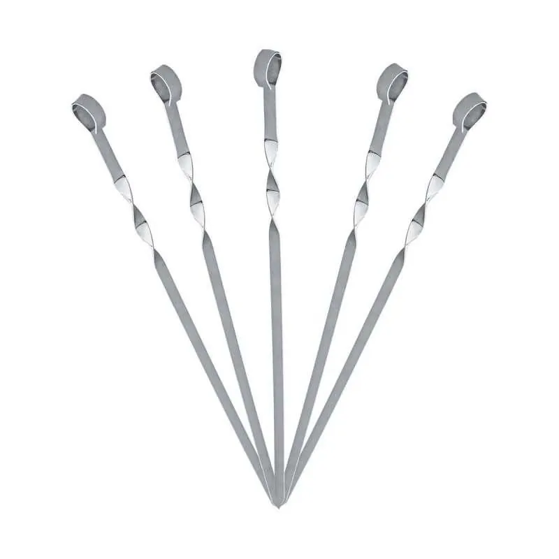 Πρακτικό σετ από 6 ανοξείδωτα σουβλάκια 44cm, ιδανικά για να φτιάξετε τα δικά σας χειροποίητα σουβλάκια ή κεμπάπ. Είναι κατάλληλα για τη σχάρα και το bbq, ενώ καθαρίζονται εύκολα και δεν σκουριάζουν.