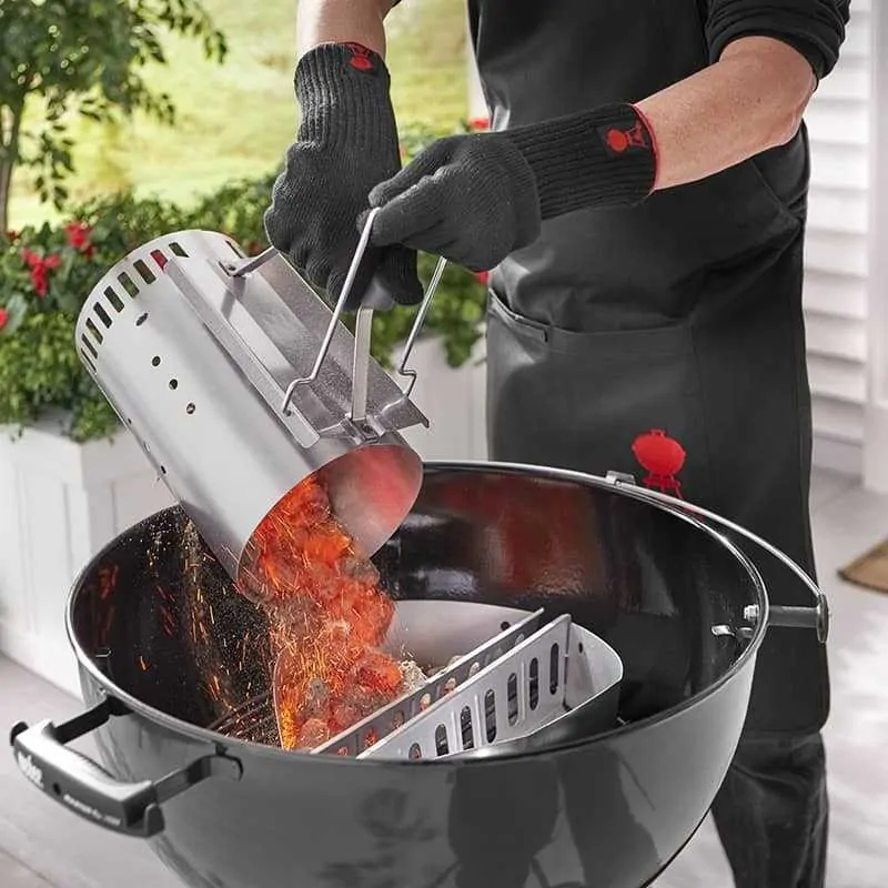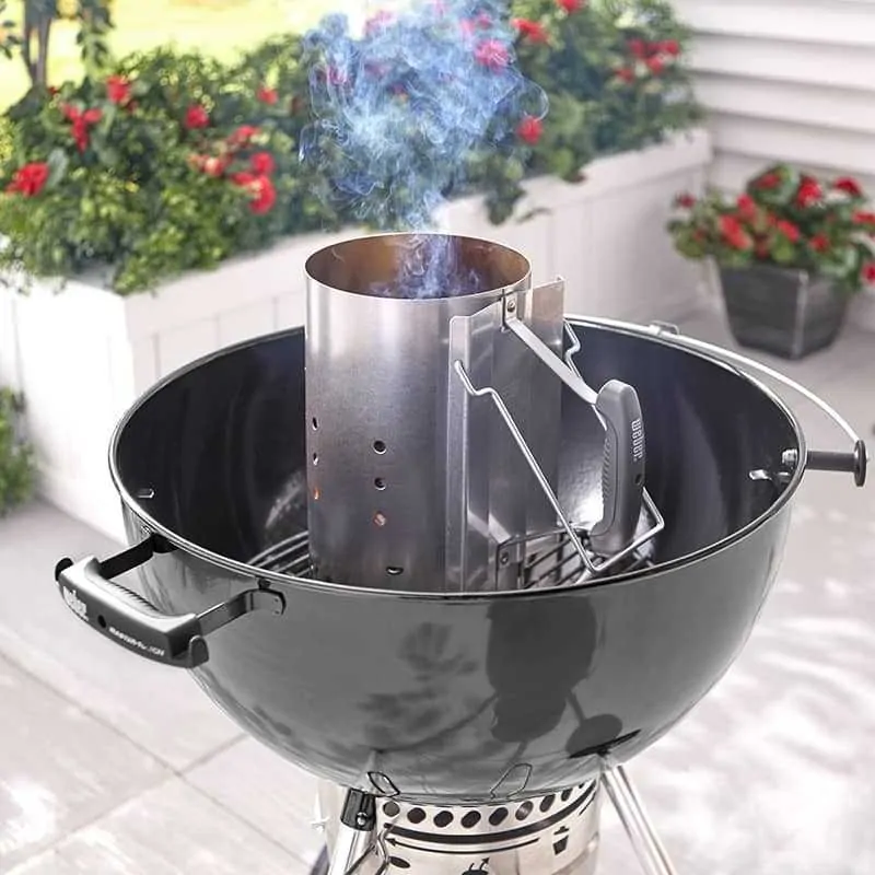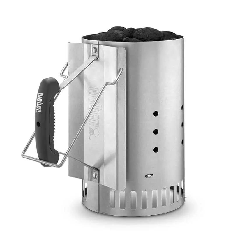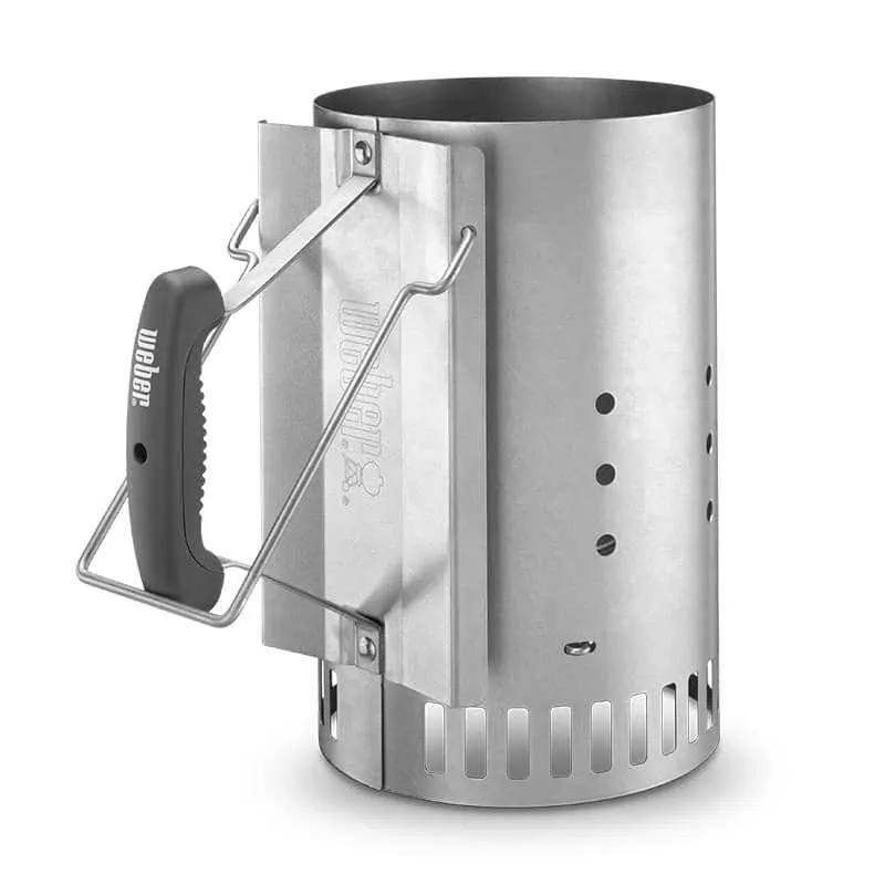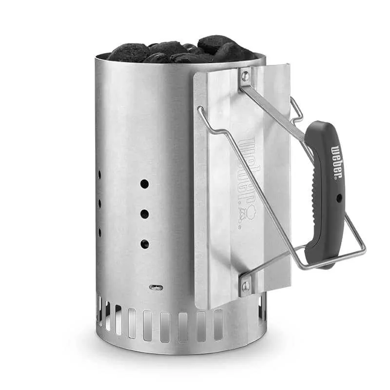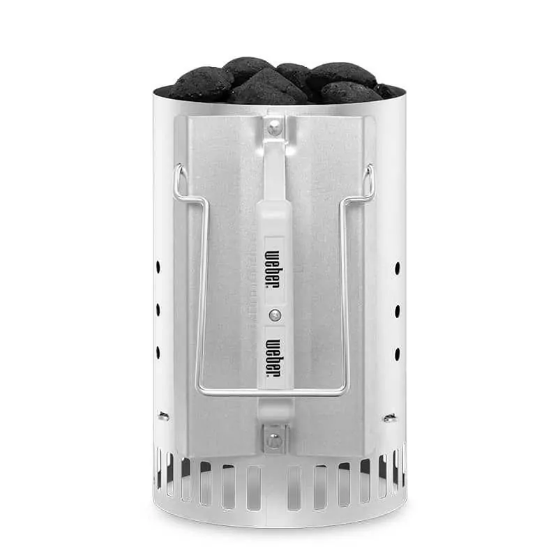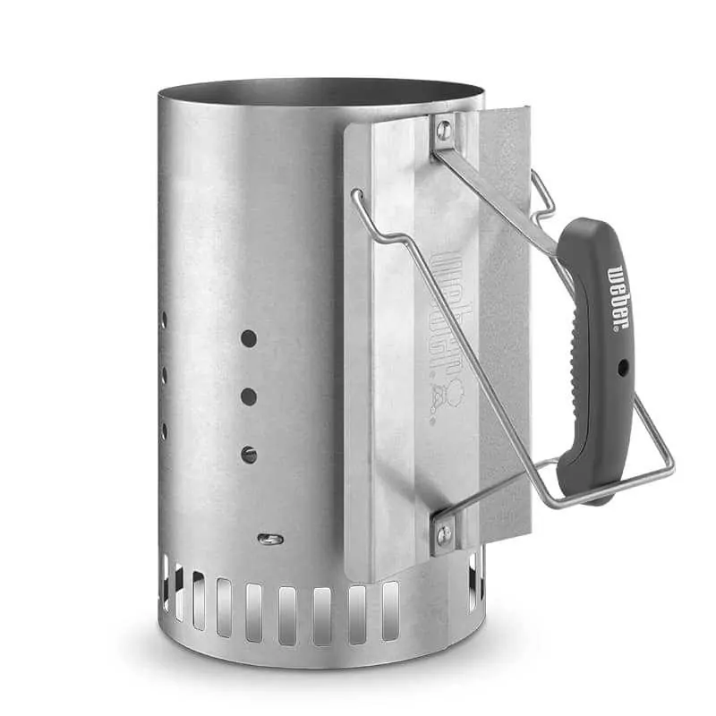 Ο γρηγορότερος τρόπος για να φτιάξετε γρήγορα τη φωτιά σας είναι με το στιβαρό και ιδιαίτερα ανθεκτικό δοχείο εκκίνησης της Weber. Ο απαραίτητος βοηθός κάθε ψήστη και ο πιο γρήγορος και εύκολος τρόπος για να ξεκινήσετε το ψήσιμο. Με σχεδιασμό δυο λαβών, παρέχει μεγαλύτερο έλεγχο όταν ρίχνετε τα αναμμένα κάρβουνα. Λειτουργεί ακόμα καλύτερα με τους κύβους προσανάμματος 30346 της Weber. Το δοχείο εκκίνησης για κάρβουνα της Weber είναι ένα αξεσουάρ που θα σας βοηθήσει πολύ στο BBQ. Τοποθετήστε τα κάρβουνα στο δοχείο, ανάψτε με ένα προσάναμμα και αφήστε το σε ένα ασφαλές σημείο ώστε να πυρακτωθούν (π.χ. πάνω στη ψησταριά). Μέσα σε λίγα λεπτά τα κάρβουνα θα είναι έτοιμα για χρήση και θα μπορείτε να ξεκινήσετε το ψήσιμο στο μαντεμένιο σας τηγάνι! Το δοχείο εκκίνησης είναι κατασκευασμένο από ανοξείδωτο ατσάλι και το χερούλι του έχει εργονομική πυράντοχη επένδυση ώστε να μην καίγεστε όταν το χρησιμοποιείτε.
