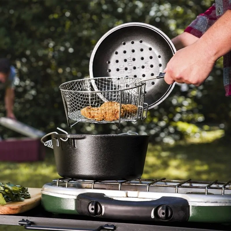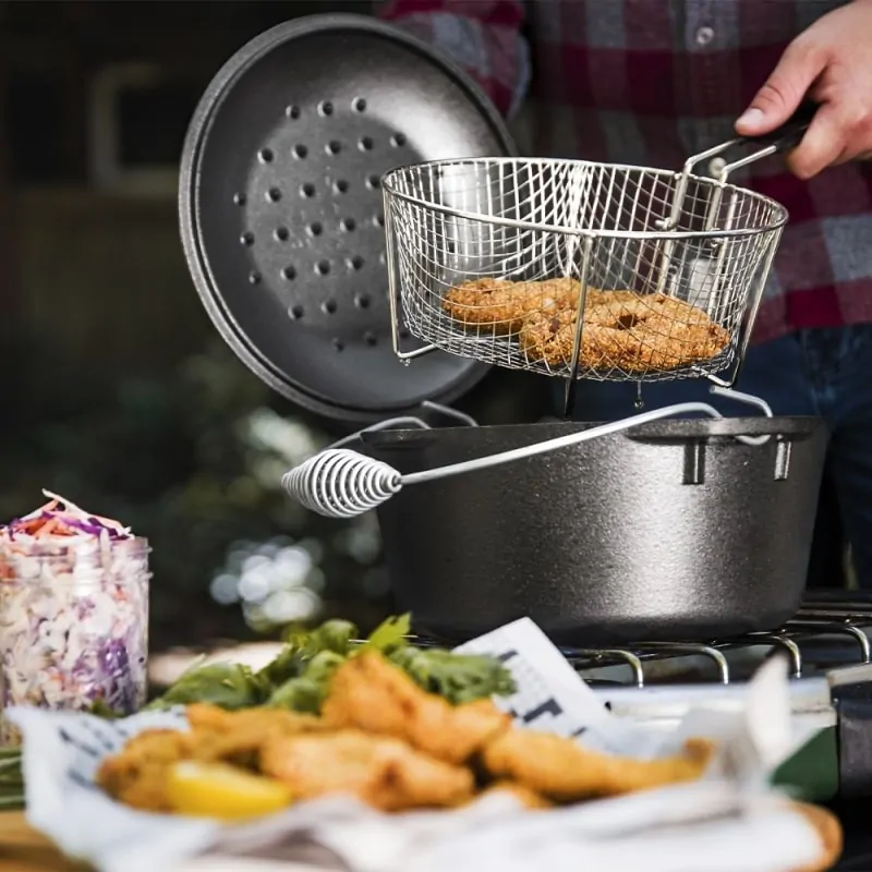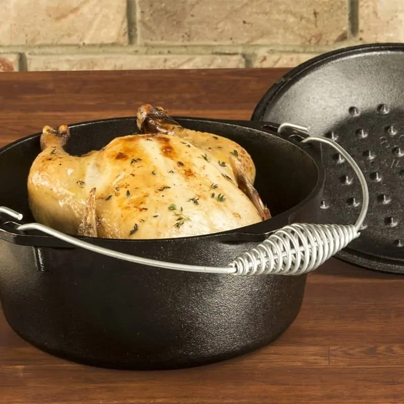 Η μαντεμένια γάστρα 4,7lt της Lodge είναι η ιδανική επιλογή για να μαγειρέψετε νόστιμα φαγητά στην οικιακή κουζίνα ή στο BBQ και την εξοχή. Χρησιμοποιήστε την στο μάτι της κουζίνας σας ή στο φούρνο και εντυπωσιάστε την οικογένεια και τους φίλους σας! Η μαντεμένια γάστρα θα μαγειρέψει ομοιόμορφα το φαγητό σας, ενώ το καπάκι θα κάνει τη διάχυση θερμότητας ακόμη καλύτερη, καθώς οι ατμοί που θα βγουν από το φαγητό υγροποιούνται και προσθέτουν μια επιπλέον νοστιμιά στη συνταγή σας! Επιπλέον, η ανοξείδωτη λαβή που υπάρχει στο σκεύος, θα σας βοηθήσει να μεταφέρετε εύκολα και με ασφάλεια τη γάστρα, όταν επιλέξετε να μαγειρέψετε στην ύπαιθρο ή το camping. Τα σκεύη της Lodge είναι preseasoned, δηλαδή έχει γίνει η απαραίτητη διαδικασία με φυτικό λάδι ώστε να δημιουργηθεί μια αντικολλητική πατίνα, η οποία θα κάνει το φαγητό σας να μην κολλάει. Είναι σχεδιασμένο και κατασκευασμένο στις ΗΠΑ.