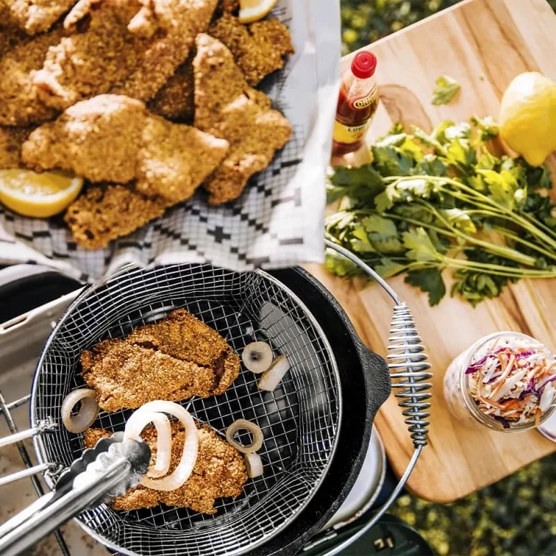 • Η ανοξείδωτη λαβή σας επιτρέπει να μεταφέρετε εύκολα τη γάστρα όταν μαγειρεύετε στo camping και τη φύση