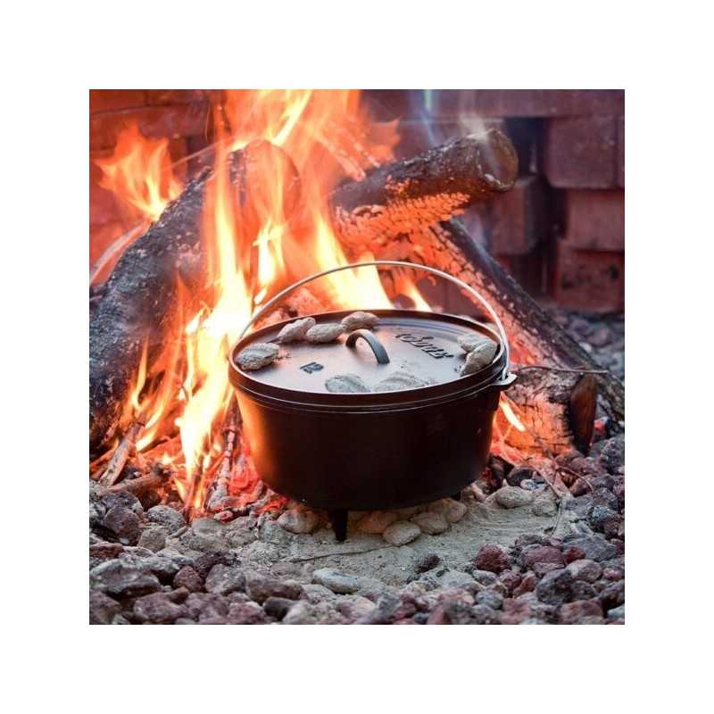 Η μαντεμένια γάστρα 7,57lt της Lodge είναι η ιδανική επιλογή για να μαγειρέψετε νόστιμα φαγητά στο BBQ και την εξοχή. Χρησιμοποιήστε την και στο τζάκι και εντυπωσιάστε την οικογένεια και τους φίλους σας! Η μαντεμένια γάστρα θα μαγειρέψει ομοιόμορφα το φαγητό σας, ενώ το καπάκι θα κάνει τη διάχυση θερμότητας ακόμη καλύτερη, καθώς οι ατμοί που θα βγουν από το φαγητό υγροποιούνται και προσθέτουν μια επιπλέον νοστιμιά στη συνταγή σας! Τα ποδαράκια της βοηθούν στη δημιουργία απόστασης από την φωτιά ώστε να μην καεί το φαγητό, γι'αυτό και είναι ιδανική για ανοιχτή φωτιά, ξυλόφουρνο και BBQ. Βέβαια, με τη βοήθεια ενός ταψιού μπορεί να χρησιμοποιηθεί και στον οικιακό φούρνο. Τα σκεύη της Lodge είναι preseasoned, δηλαδή έχει γίνει η απαραίτητη διαδικασία με φυτικό λάδι ώστε να δημιουργηθεί μια αντικολλητική πατίνα, η οποία θα κάνει το φαγητό σας να μην κολλάει. Στην συσκευασία περιλαμβάνεται βίβλιο με οδηγίες χρήσης και συνταγές. Είναι σχεδιασμένη και κατασκευασμένη στις ΗΠΑ.