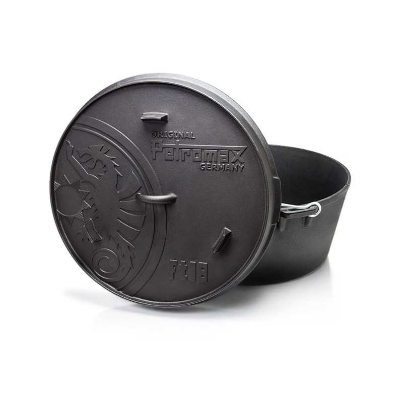Εξαιρετικής ποιότητας μαντεμένια γάστρα της Petromax με επίπεδο πάτο, ιδανική για χρήση πάνω σε μάτι ή μέσα σε ξυλόφουρνο. Είναι επίσης κατάλληλη για χρήση απευθείας πάνω σε φωτιά, σε ξυλόφουρνο, στο bbq ή ακόμα και στο τζάκι. Το καπάκι της γάστρας μπορεί να γυρίσει ανάποδα (χάρη στα 3 πόδια στήριξης που έχει) και να χρησιμοποιηθεί ως πλάκα ψησίματος, πάνω από φωτιά ή κάρβουνα. Όταν βρίσκεται τοποθετημένο πάνω στη γάστρα δημιουργεί τις τέλειες συνθήκες ψησίματος, καθώς όλη η θερμότητα εγκλωβίζεται μέσα στη γάστρα και ψήνει το φαγητό ομοιόμορφα από όλες τις πλευρές. Το καπάκι διαθέτει επιπλέον και ειδική τρύπα για θερμόμετρο φαγητού. Η γάστρα είναι ήδη pre-seasoned και έτοιμη για χρήση, δηλαδή έχει γίνει η απαραίτητη επάλειψη με φυτικό λάδι που δημιουργεί το κατάλληλο αντικολλητικό φιλμ για να μην κολλάει το φαγητό.
