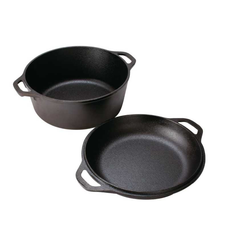 Εάν είναι η πρώτη φορά που επιλέγετε να αγοράσετε ένα μαντεμένιο σκεύος, σας έχουμε τη λύση! Το combo της Lodge με τη μαντεμένια γάστρα και το τηγάνι με χωρητικότητα 4,7 λίτρα είναι η ιδανική επιλογή για να έχετε 3 σκεύη σε ένα. Αρχικά, θα έχετε ένα τηγάνι, στο οποίο θα μπορείτε να τσιγαρίσετε και να τηγανίσετε τα πάντα! Έπειτα, θα έχετε ένα βαθύ τηγάνι το οποίο είναι ιδανικό για deep frying, και για άλλες νόστιμες συνταγές με σάλτσα! Το μαντεμένιο καπάκι, επίσης, βοηθά στην ακόμη καλύτερη διάχυση της θερμότητας στο σκεύος, με αποτέλεσμα να επιτυγχάνεται ένα ομοιόμορφο ψήσιμο κρατώντας όλες τις γεύσεις από τον ατμό, ο οποίος υγροποιείται και επιστρέφει ξανά στο φαγητό! Τέλος, το τηγάνι γίνεται καπάκι και μπορείτε να χρησιμοποιήσετε το σκεύος σαν γάστρα ώστε να δημιουργήσετε μοναδικές γεύσεις στο φούρνο ή στο BBQ. Μη ξεχνάτε ότι όλα τα μαντεμένια σκεύη μπορούν να χρησιμοποιηθούν στην κουζίνα αλλά και στην εξοχή και το BBQ. Τα σκεύη της Lodge είναι preseasoned, δηλαδή έχει γίνει η απαραίτητη διαδικασία με φυτικό λάδι ώστε να δημιουργηθεί μια αντικολλητική πατίνα, η οποία θα κάνει το φαγητό σας να μην κολλάει. Είναι σχεδιασμένο και κατασκευασμένο στις ΗΠΑ.