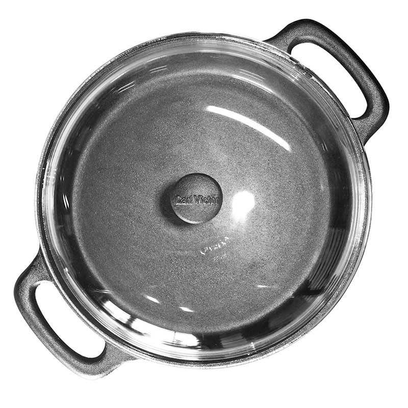 Σχεδιασμένη από τον Göran Ek, η μαντεμένια κατσαρόλα της Carl Victor έχει την ιδανική καμπυλότητα εσωτερικά για ευκολία στο μαγείρεμα και το καθάρισμα. Το γυάλινο καπάκι pyrex κάνει το σκεύος λίγο πιο ελαφρύ (σε σχέση με το μαντεμένιο καπάκι) επιτρέποντας ταυτόχρονα να ρίχνετε μια ματιά στο φαγητό χωρίς να το ανοίγετε. Η διάμετρος του πάτου είναι 23 cm, ενώ η διάμετρος στο χείλος είναι 28 cm.