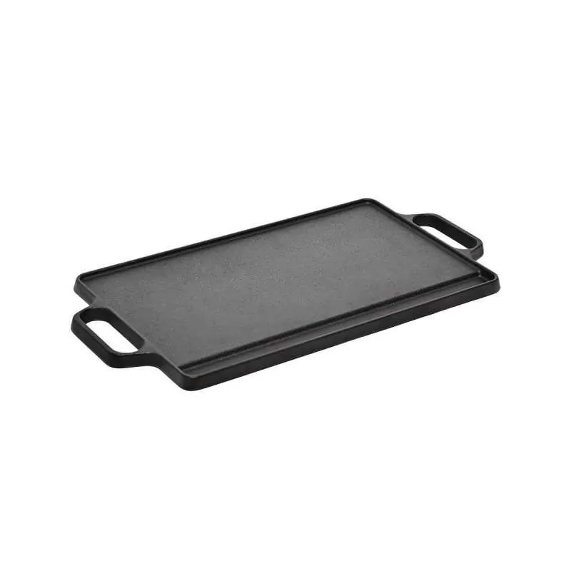 H μαντεμένια πλάκα διπλής όψης 24 x 47 cm της Estia είναι ένα σκεύος που πραγματικά δεν πρέπει να λείπει από τη κουζίνα σας! Ο εργονομικός σχεδιασμός της, χάρη στον οποίο έχετε μια λεία πλάκα και μια πλάκα με σχάρες, σας επιτρέπει να ψήσετε κυριολεκτικά τα πάντα, παντού! Μπορείτε να την τοποθετήσετε στην εστία γκαζιού, ή μπορείτε να τη βάλετε στο φούρνο ή στο τζάκι σας. Είναι ιδανική επίσης για το BBQ και τη φωτιά. Έχοντας αυτή τη πλάκα μπορείτε να ψήσετε κρέας, ψάρι, λαχανικά, αλλά και pancakes, αυγά, ή σάντουιτς. Η μεγάλη διάχυση θερμότητας του μαντεμιού θα ψήσει γρήγορα και ομοιόμορφα όλα τα φαγητά σας. Η πλάκα της Estia είναι preseasoned, δηλαδή έχει γίνει η απαραίτητη διαδικασία με φυτικό λάδι ώστε να δημιουργηθεί μια αντικολλητική πατίνα, η οποία θα κάνει το φαγητό σας να μην κολλάει.