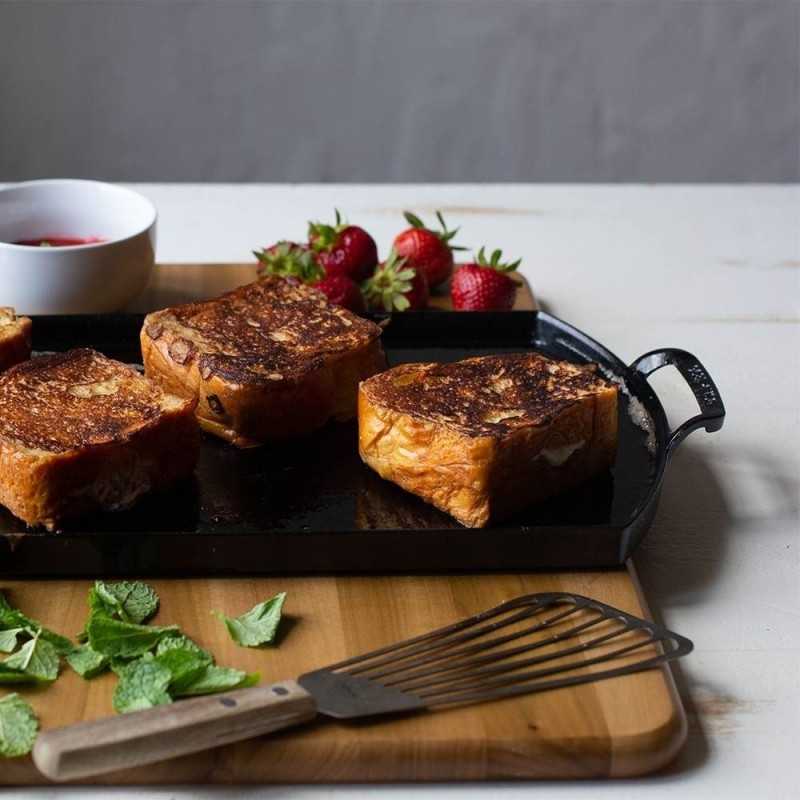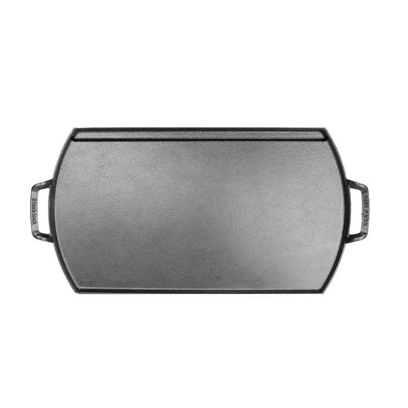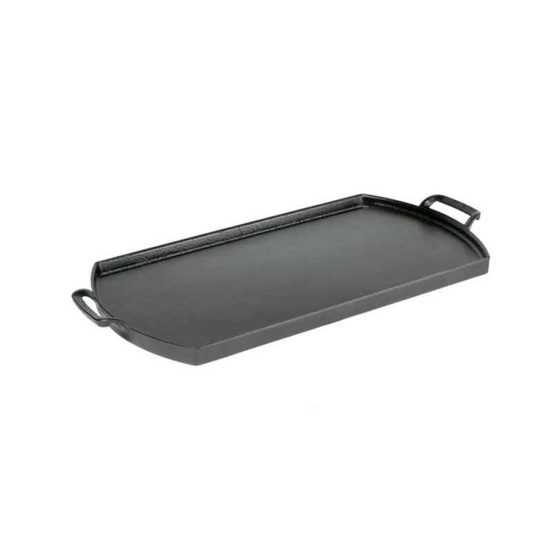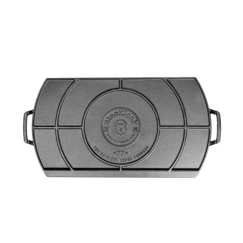 H μαντεμένια πλάκα Blacklock 25,4 x 50,8 cm της Lodge είναι ένα σκεύος που πραγματικά δεν πρέπει να λείπει από τη κουζίνα σας λόγω του χαμηλού βάρους αλλά και εξαιτίας της πολυχρηστικότητάς του! Ο εργονομικός σχεδιασμός της, σας επιτρέπει να ψήσετε κυριολεκτικά τα πάντα, παντού! Μπορείτε να την τοποθετήσετε στην εστία γκαζιού, ή μπορείτε να τη βάλετε στο φούρνο ή στο τζάκι σας. Είναι ιδανική επίσης για το BBQ και τη φωτιά. Έχοντας αυτή τη πλάκα μπορείτε να ψήσετε κρέας, ψάρι, λαχανικά, αλλά και pancakes, αυγά, ή σάντουιτς. Γιατί όχι και μια φανταστική ορθογώνια σπιτική πίτσα; Η μεγάλη διάχυση θερμότητας του μαντεμιού θα ψήσει γρήγορα και ομοιόμορφα όλα τα φαγητά σας.
