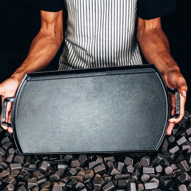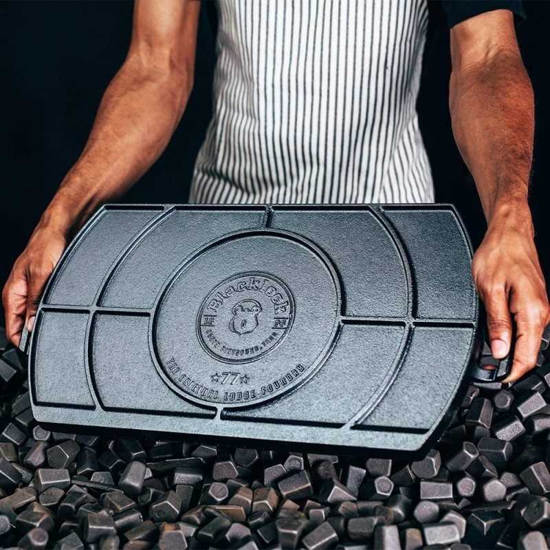 Και το καλύτερο; Είναι της σειράς Blacklock που έχει πάρει την ονομασία του από το πρώτο χυτήριο που δημιούργησε ο ιδιοκτήτης της εταιρείας Joseph Lodge. Η σειρά αυτή έρχεται να "λύσει" τους βασικούς σας προβληματισμούς σχετικά με τα μαντεμένια σκεύη: Το βάρος και την αντικολλητικότητα. Η μαντεμένια πλάκα Blaclock 25,4 x 50,8 cm είναι πολύ πιο ελαφριά από άλλες αντίστοιχες, αφού ζυγίζει μόνο 3,25 κιλά, ενώ παράλληλα έχει γίνει τριπλό seasoning, δηλαδή έχουν ψηθεί στους ειδικούς φούρνους τρεις φορές με φυτικό λάδι, ώστε να είναι ακόμη πιο αντικολλητική από τις πρώτες χρήσεις του. Με αυτή την καινοτομία, δεν υπάρχει αμφιβολία ότι μπορείτε πλέον να ψήνετε καθημερινά σε μια πλάκα! Είναι σχεδιασμένη και κατασκευασμένη στις ΗΠΑ.