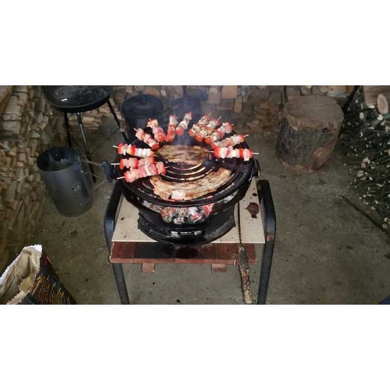 • Με δύο μαντεμένιες σχάρες για πολλές επιλογές ψησίματος και απόστασης από την φωτιά