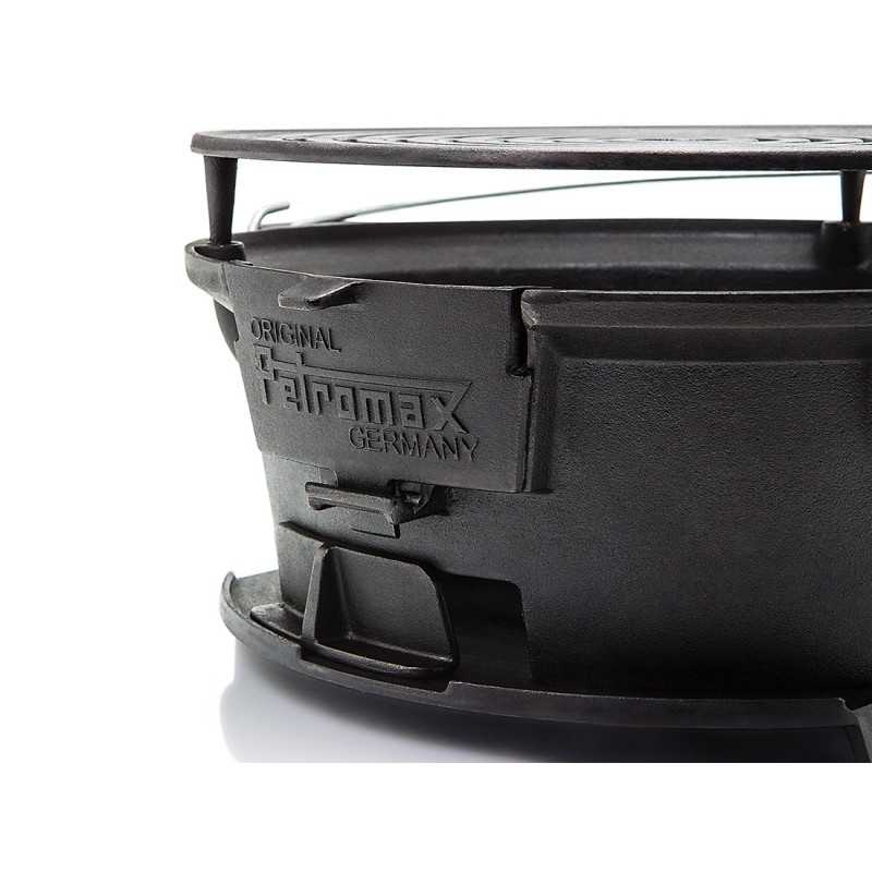 Εξαιρετικής ποιότητας μαντεμένια ψησταριά BBQ της Petromax με 2 μαντεμένιες σχάρες, ιδανική για ψησίματα με κάρβουνα ή ξύλα. Μαντεμένια ψησταριά BBQ πολλαπλών χρήσεων με δύο μαντεμένιες σχάρες για πολλές επιλογές ψησίματος και απόστασης από την φωτιά. Συνδυάζεται τέλεια με μαντεμένια γάστρα της Petromax (έως το μέγεθος ft-12). Οι σχάρες είναι ήδη pre-seasoned και έτοιμες για χρήση, δηλαδή έχει γίνει η απαραίτητη επάλειψη με φυτικό λάδι που δημιουργεί το κατάλληλο αντικολλητικό φιλμ για να μην κολλάει το φαγητό.