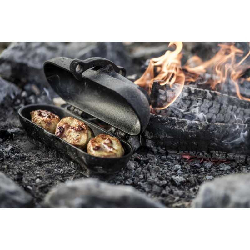 Πρωτότυπο μαντεμένιo σκεύος για να ψήσετε πατάτες ή άλλα λαχανικά, όπως μελιτζάνες και γεμιστές πιπεριές, στη φωτιά ή πάνω στα κάρβουνα. Είναι τέλειο για να ψήσετε τρεις μέτριες πατάτες, καθώς η χωρητικότητα του είναι 1,8 λίτρα. Διαθέτει έξυπνο μηχανισμό που κρατάει κλειστό το σκεύος καθόλη την διάρκεια του ψησίματος ακόμα και όταν θα το σηκώσετε με το ατσάλινο χερούλι της Petromax (δεν συμπεριλαμβάνεται) ώστε να βγάλετε το σκεύος από τη φωτιά με ασφάλεια. Το μαντέμι προσφέρει εξαιρετική διάχυση θερμότητας που θα ψήσει τις πατάτες σας ομοιόμορφα ενώ επίσης χαρακτηρίζεται από υψηλή ικανότητα σταθερής θερμοκρασίας ψησίματος. Είναι έτοιμο για χρήση (pre-seasoned).