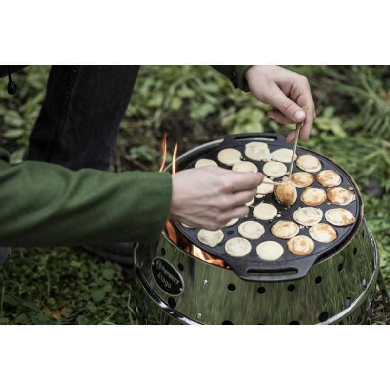 • Mαντεμένιo σκεύος για να ψήσετε πεντανόστιμες μίνι τηγανίτες στη φωτιά