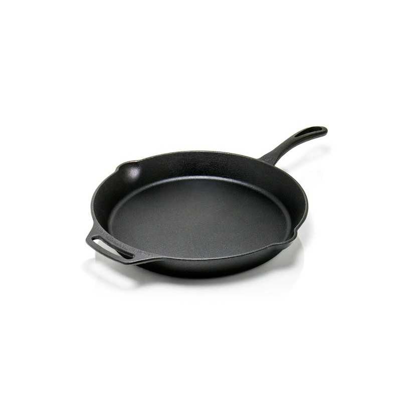 Εξαιρετικό μαντεμένιο τηγάνι (skillet) της Petromax με ένα χερούλι, μεγάλου μεγέθους. Mπορεί να χρησιμοποιηθεί σε όλων των ειδών τις εστίες (κεραμικές, επαγωγικές, γκαζιού ή ηλεκτρικές) αλλά και κατευθείαν πάνω σε φωτιά (για παράδειγμα, στο τζάκι ή σε μια φωτιά στο camping). Συνδυάζεται επίσης τέλεια σε ψησταριά υγραερίου. Είναι ήδη pre-seasoned, δηλαδή έχει γίνει η απαραίτητη επάλειψη με φυτικό λάδι που δημιουργεί το κατάλληλο αντικολλητικό φιλμ για να μην κολλάει το φαγητό.