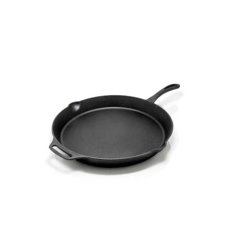 Εξαιρετικό μαντεμένιο τηγάνι (skillet) της Petromax με ένα χερούλι, μεγάλου μεγέθους. Mπορεί να χρησιμοποιηθεί σε όλων των ειδών τις εστίες (κεραμικές, επαγωγικές, γκαζιού ή ηλεκτρικές) αλλά και κατευθείαν πάνω σε φωτιά (για παράδειγμα, στο τζάκι ή σε μια φωτιά στο camping). Συνδυάζεται επίσης τέλεια σε ψησταριά υγραερίου. Είναι ήδη pre-seasoned, δηλαδή έχει γίνει η απαραίτητη επάλειψη με φυτικό λάδι που δημιουργεί το κατάλληλο αντικολλητικό φιλμ για να μην κολλάει το φαγητό.
