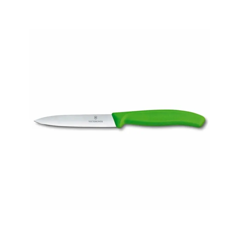 Το κλασικό ίσιο μαχαίρι της σειράς Swiss Classic της Victorinox θα γίνει ο αγαπημένος σας σύντροφος στο καθημερινό τραπέζι αλλά και στα γιορτινά σας γεύματα. Διαθέτει ίσια και μυτερή λάμα (μήκους 10 cm) με εργονομική λαβή. Το μαχαίρι μπόρει να πλυθεί στο πλυντήριο πιάτων.