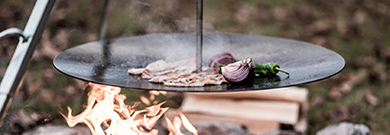 Ανάψτε τη φωτιά σας από κάτω και απολαύστε υγιεινό ψήσιμο πάνω σε μια απίθανη πλάκα ψησίματος. Στο κέντρο της πλάκας αναπτύσσονται υψηλότερες θερμοκρασίες απ'ότι στην περιφέρεια. Το φαγητό σας ψήνεται με τους χυμούς του, δημιουργώντας ένα απίθανο γευστικό αποτέλεσμα!