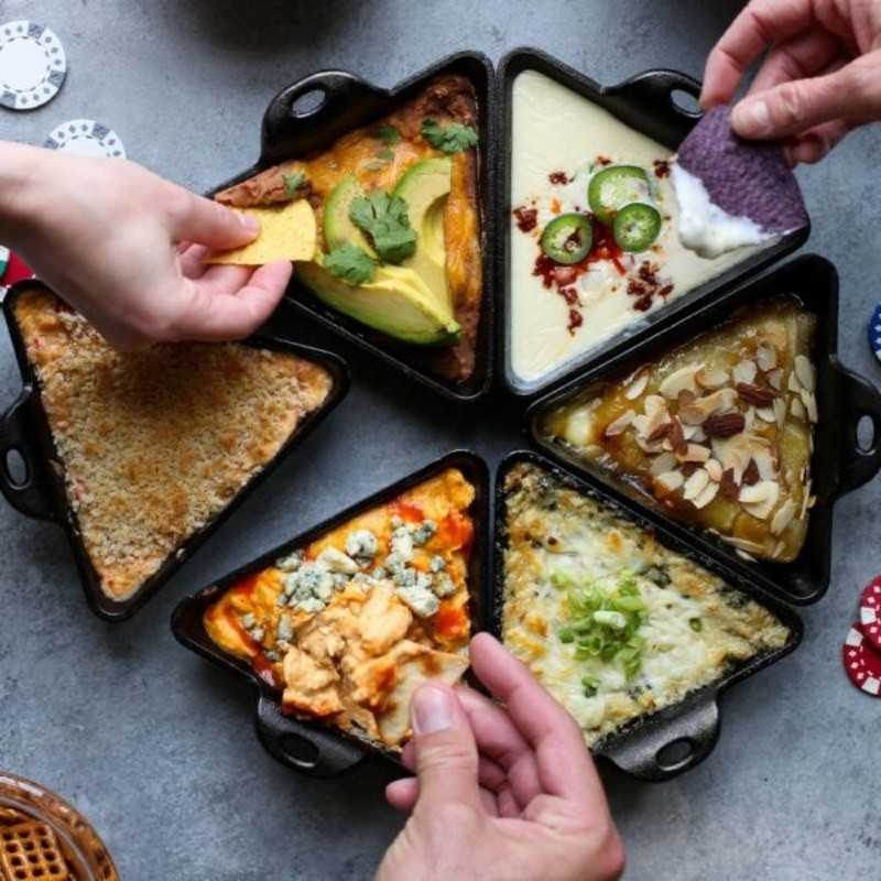 Το τριγωνικό μαντεμένιο σκεύος σερβιρίσματος της Lodge είναι ιδανικό για να φτιάξετε ατομικά γλυκά, ή για να σερβίρετε ζεστά dips και λιωμένα τυριά. Επιπλέον, μπορείτε να μαγειρέψετε και να κρατήσετε ζεστά τα πεντανόστιμα ορεκτικά σας! Είναι μια πολύ καλή λύση για τα γιορτινά τραπέζια όπου θέλετε να εντυπωσιάσετε, αλλά και στην καθημερινότητά σας όπου θέλετε να μαγειρέψετε μοναδικές συνταγές σε εντυπωσιακά σκεύη! Το τριγωνικό σκεύος σερβιρίσματος της Lodge έχει υποστεί επιπλέον ειδική θερμική επεξεργασία (heat-treated) ώστε να είναι ιδαίτερα ανθεκτικό, ενώ είναι ήδη pre-seasoned, δηλαδή έχει γίνει η απαραίτητη διαδικασία με φυτικό λάδι ώστε να δημιουργηθεί μια αντικολλητική πατίνα, η οποία θα κάνει το φαγητό σας να μην κολλάει. Η μαγειρική σε ένα μαντεμένιο σκεύος θα γίνει τρόπος ζωής, αφού τα σκεύη δεν χαλάνε, αλλά βελτιώνονται με τη χρήση, ενώ θα χρειαστείτε λιγότερο χρόνο στο μαγείρεμα καθώς η θερμότητα διαχέεται καλύτερα στα μαντεμένια σκεύη, επιτυγχάνοντας έτσι ένα πιο ομοιόμορφο αποτέλεσμα. Είναι σχεδιασμένο και κατασκευασμένο στις ΗΠΑ.